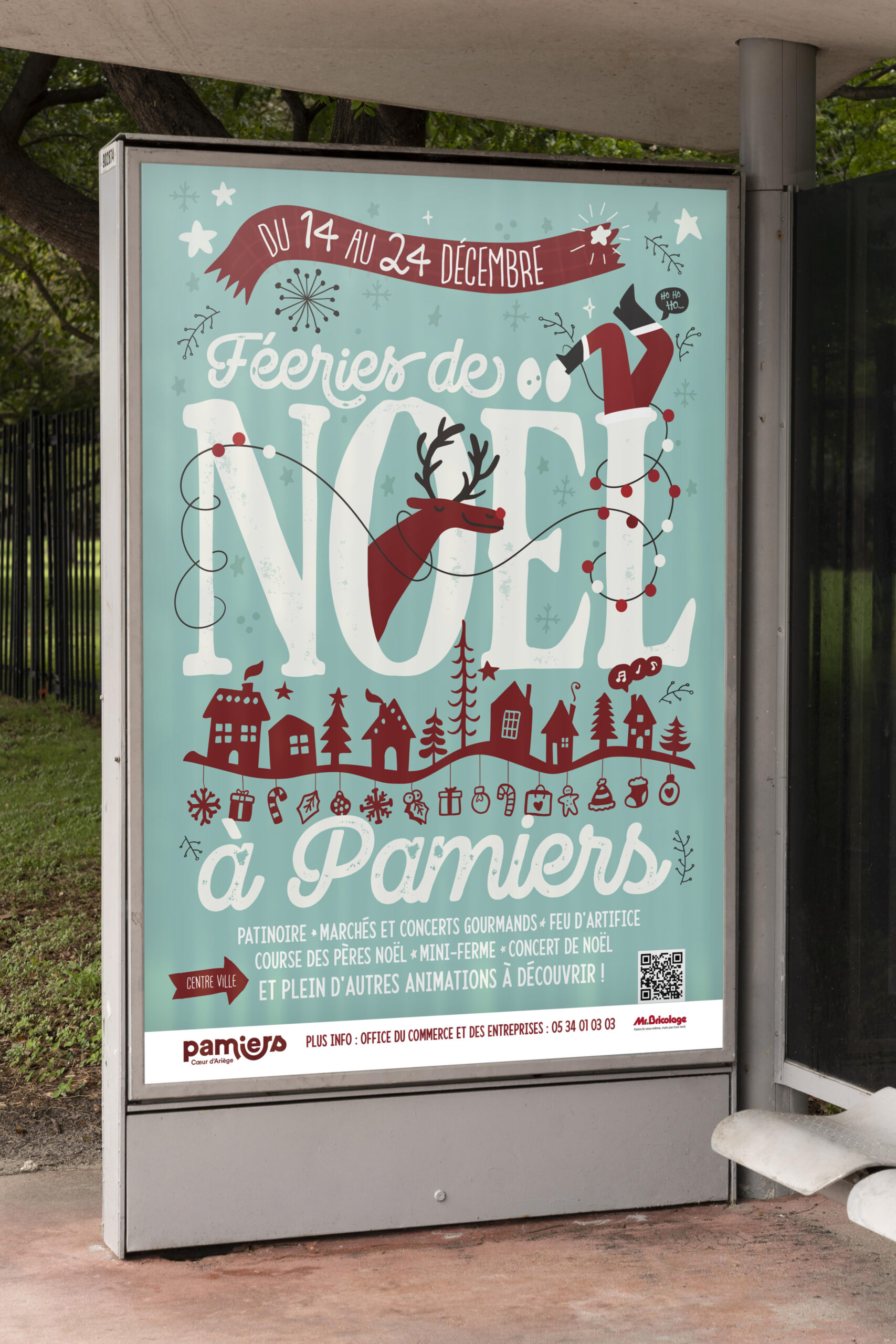 Poster for Pamiers’ Christmas festivities, digitally designed for large-format printing.