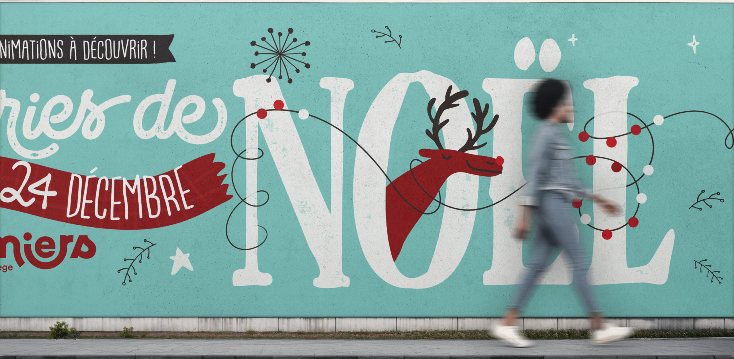 Afiche para las festividades navideñas de la mairie de Pamiers, realizado digitalmente para impresión en gran formato.